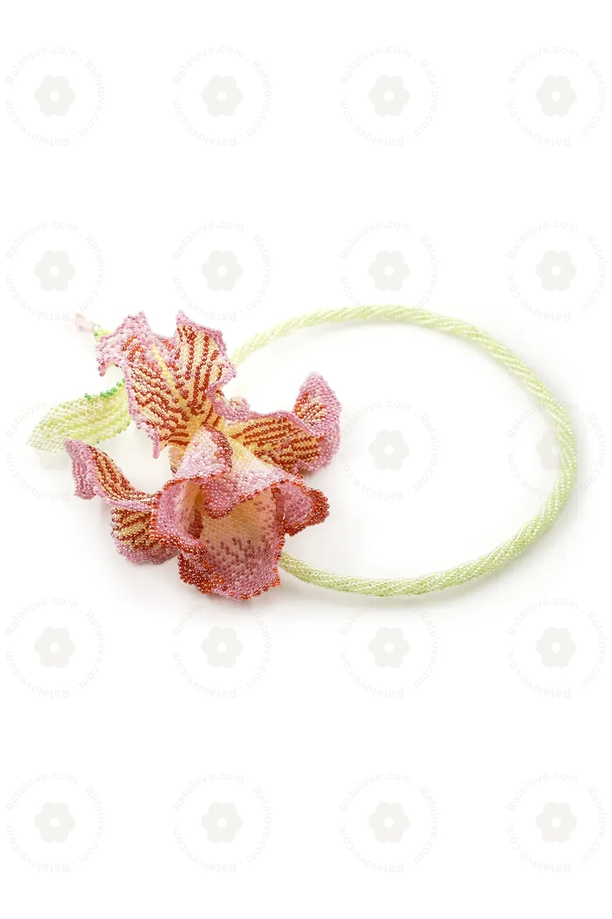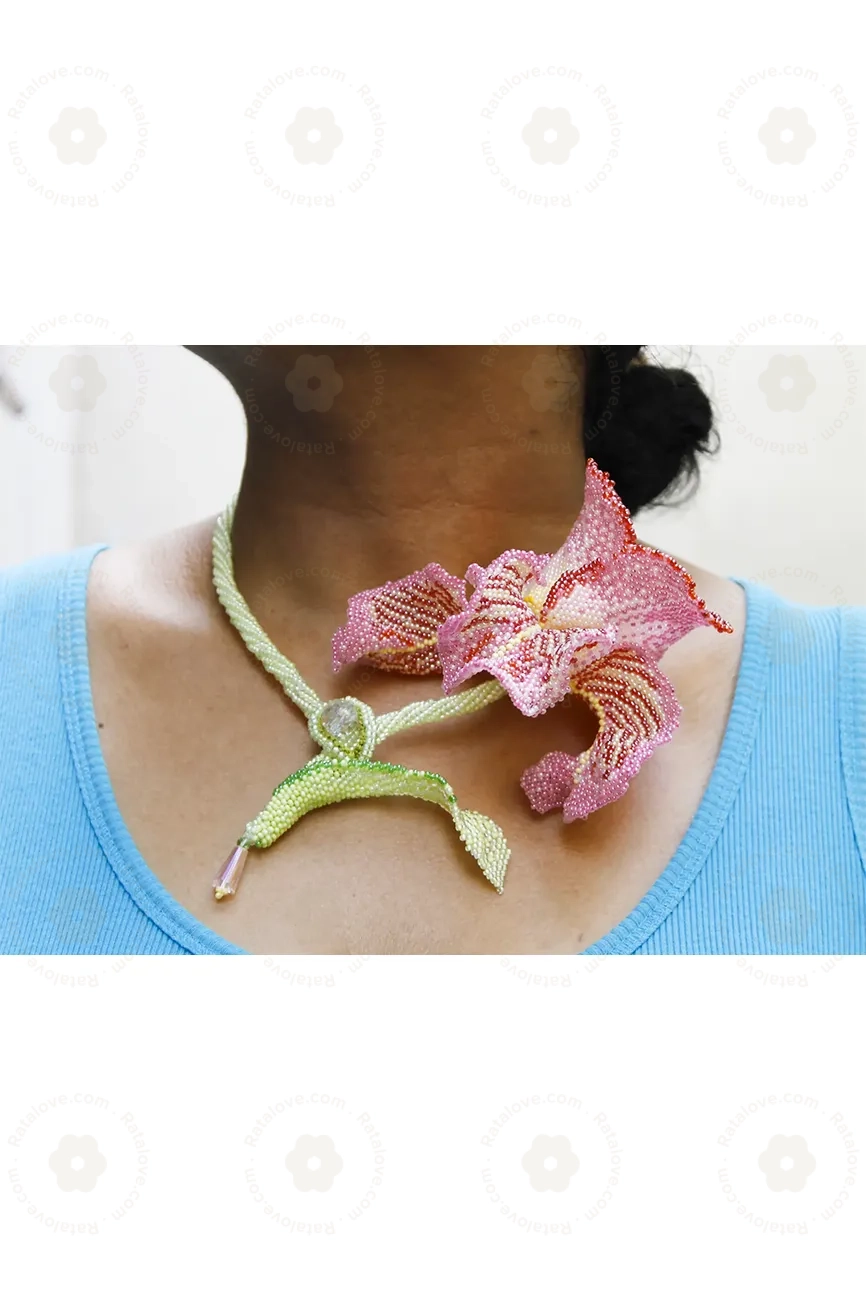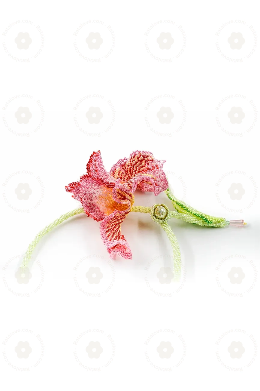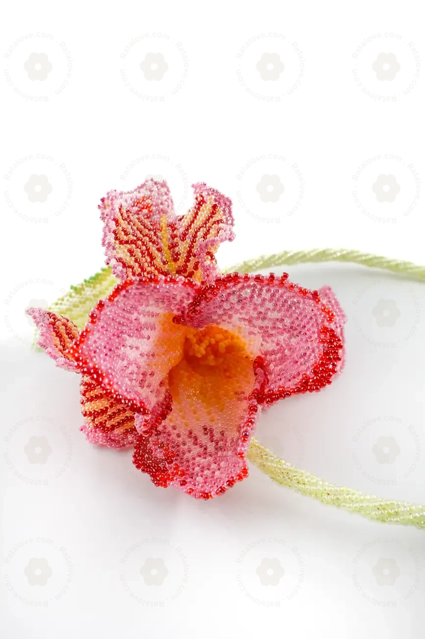 A handwoven beaded flower, artfully crafted with attention to detail. Inspired by the elegance and grace of a rose, each petal is intricately woven using vibrant and shimmering beads, creating a lifelike representation of nature's beauty. Capturing the essence of a blooming rose, this exquisite piece serves as a timeless symbol of love and appreciation, making it a unique and cherished addition to any collection or a thoughtful gift that resonates with the enduring charm of a rose in full bloom.